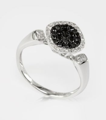Rings. With a wave of your hand you ll catch the eye of everyone in the room while wearing this stunning ring. Accent your upscale look with the elegant and refined Effy Black and White Diamond .38 ct. t.w. Ring in 14K White Gold. Classic in design and set in 14K white gold, this shimmering ring features a timeless black and white pattern crafted of clusters of diamonds. And with equally gleaming diamond clusters on the band, this ring will sparkle with every move. Black/White 0.38 Ct. tw Size 7 14K White gold Imported